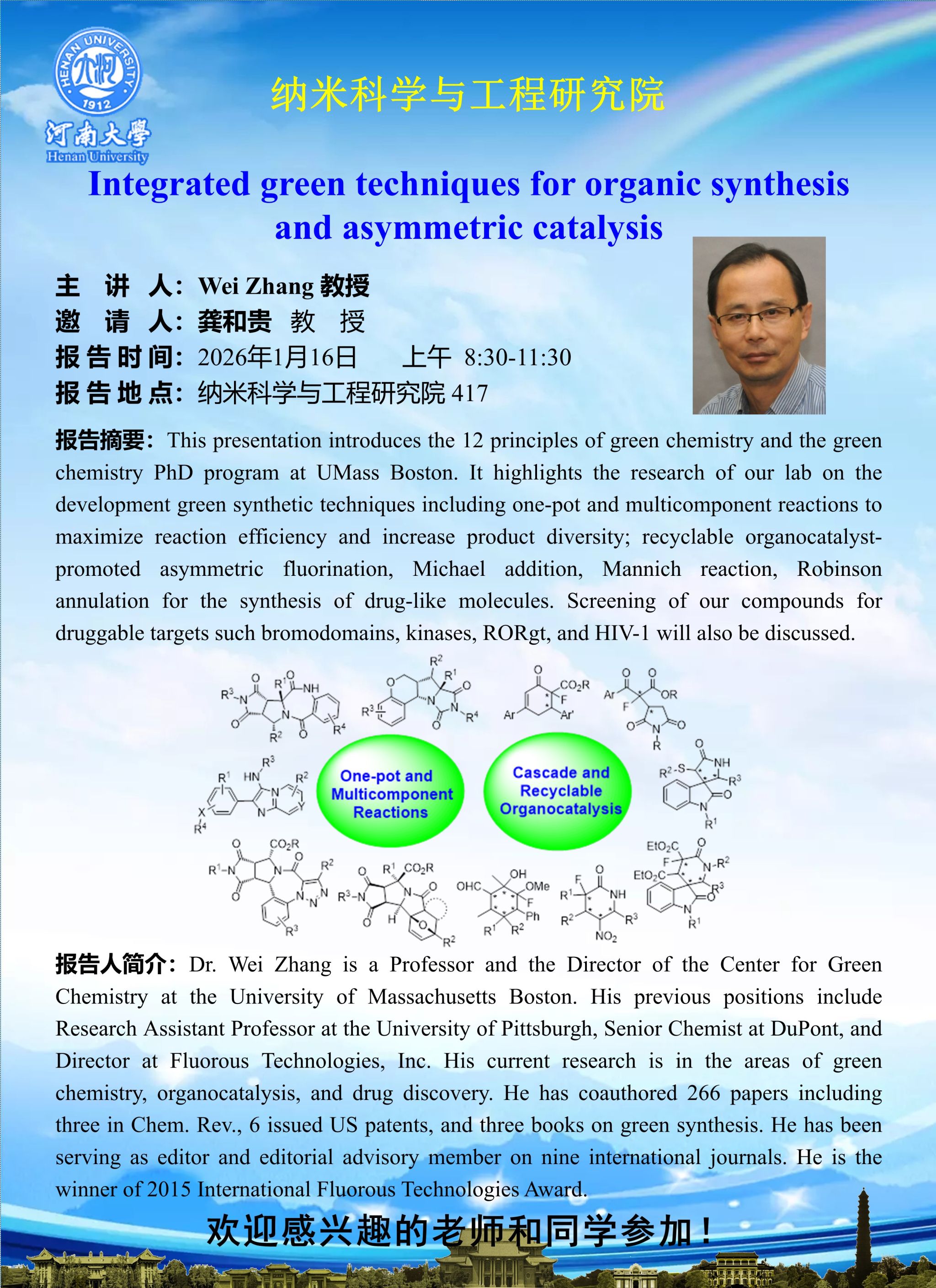 Wei Zhang:Integrated green techniques for organic synthesis and asymmetric catalysis