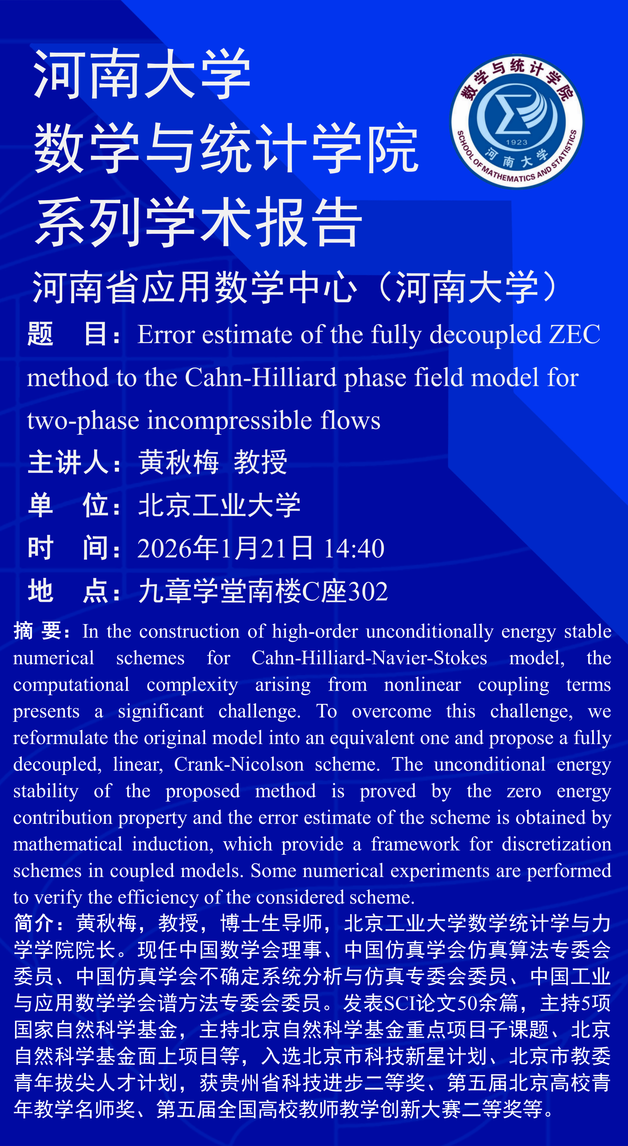 黄秋梅:Error estimate of the fully decoupled ZEC method to the Cahn-Hilliard phase field model for two-phase incompressible flows