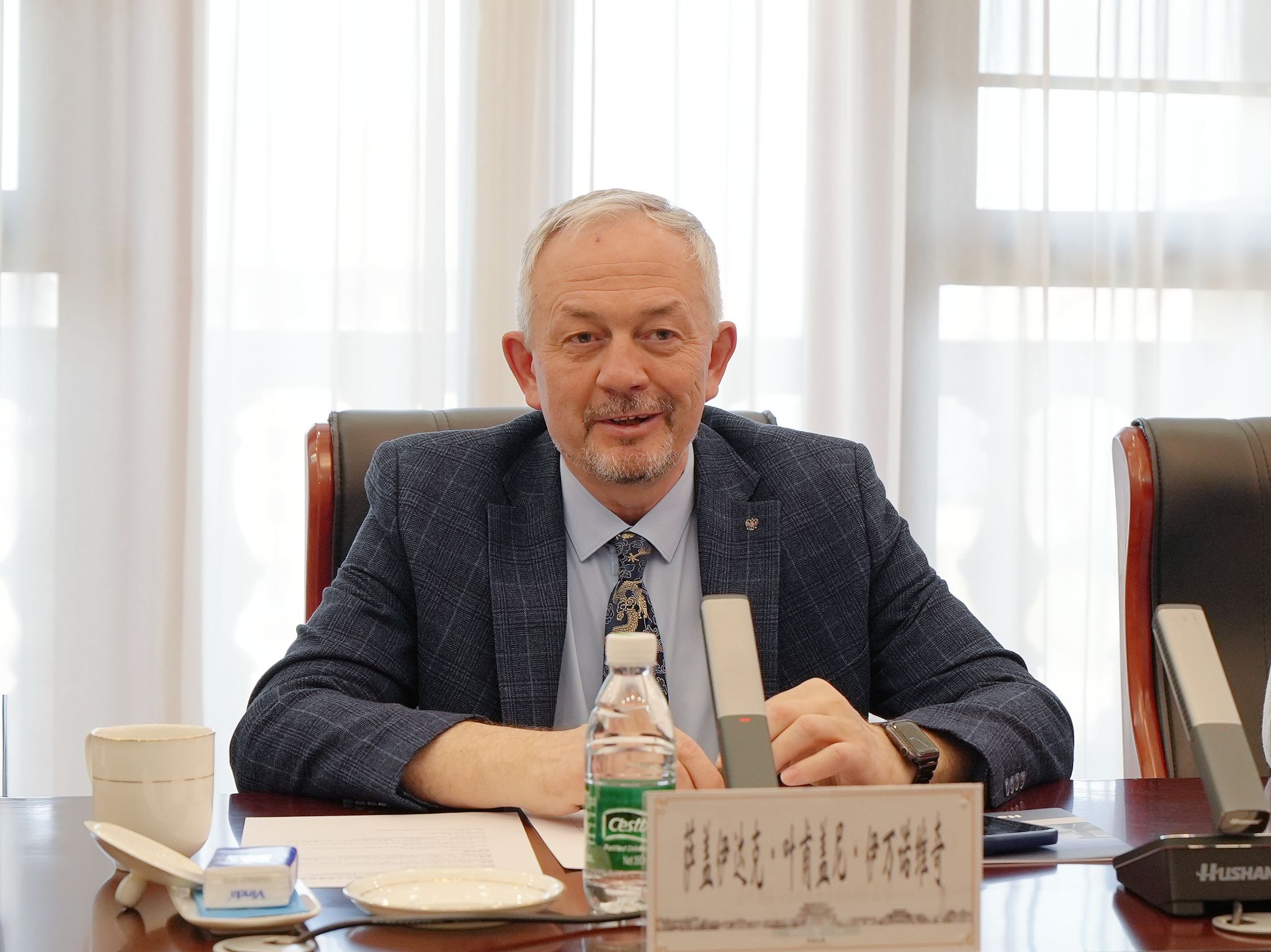Evgeniy Sagaydak expressed his appreciation to HENU for its hospitality and gave a comprehensive overview of Novosibirsk State University, covering its educational characteristics, disciplinary strengths, and international development philosophy. He stated that Novosibirsk State University places a high priority on its internationalization strategy and has strong expertise in fields such as science, engineering, and medicine. These strengths are highly compatible with HENU’s development philosophy. He expressed his hope to leverage medical collaboration as a starting point and extend cooperation to other fields, including the natural sciences and the humanities. He also emphasized the importance of faculty and student exchanges and joint research projects to promote substantive and effective cooperation between the two universities.