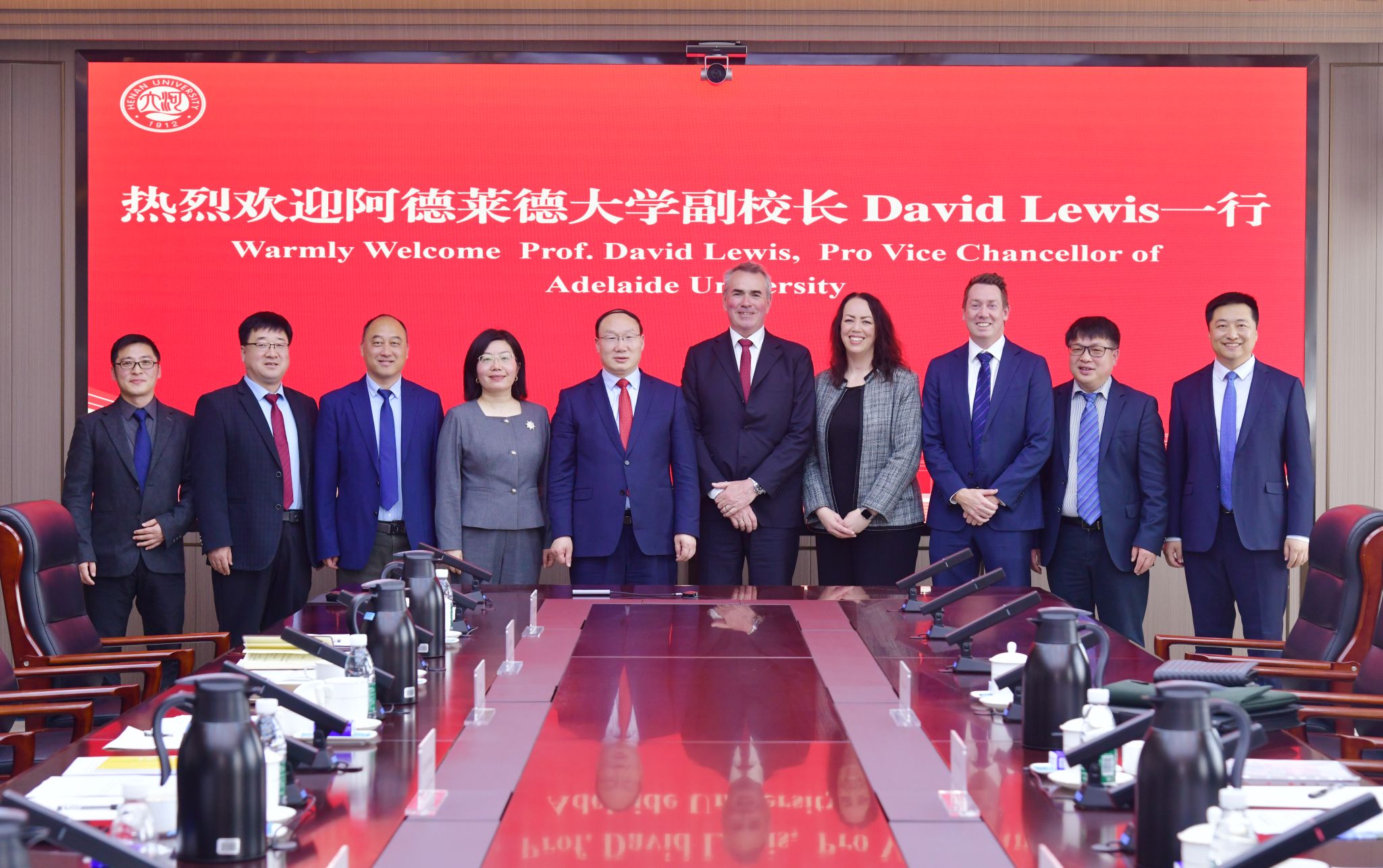 On April 10, a delegation led by David Lewis, Vice Chancellor of Adelaide University, visited Henan University (HENU). Zhang Suojiang, President of HENU, met with the delegation on the Longzihu Campus in Zhengzhou. Heads of the International Affairs Office, the School of Energy Science and Technology, and other relevant departments attended the meeting to discuss the framework for cooperation between the two universities.
