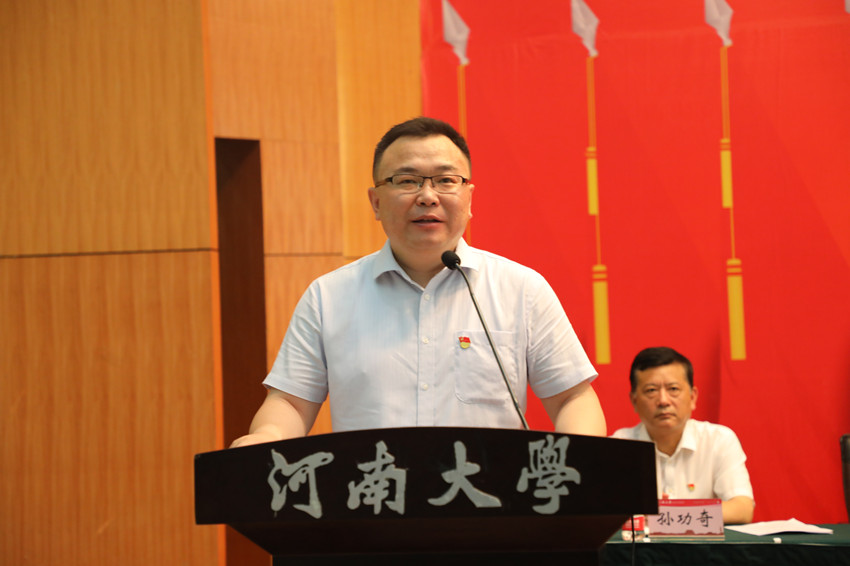 A great gathering celebrating the centenary of the Communist Party of China(CPC) was held at Jinming Campus on June 30 morning. LU Keping, Secretary of Henan University’s Party Committee, attended the ceremony and delivered a speech. Other leaders of the Party Committee also were present at the ceremony presided over by ZHANG Baoming, the Deputy Secretary of HENU’s Party committee. More than 400 people, including representatives of advanced collectives and outstanding individuals, teachers and students, gathered together to celebrate the 100th anniversary of the founding of the CPC.
