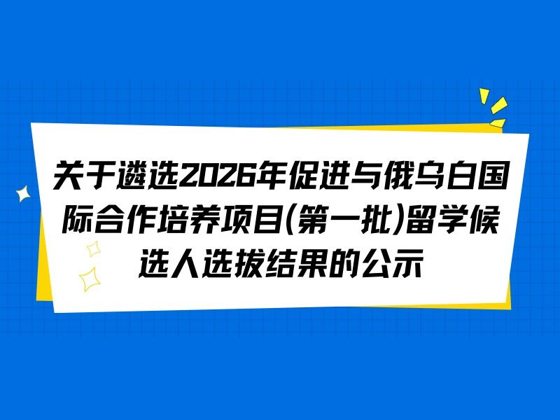 根据国家留学基金管理委员会《2026年促进与俄乌白国际合作培养项目》要求,经学生个人申请、学院审核、学校工作小组审核等,决定推荐我校以下同学申请此项目。 特此公示。姓名性别学院在读学历/年级留学院校留学身份郭家豪男软件学院本科/202...